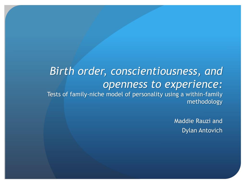Birth order, conscientiousness, and openness to experience:Tests of family-niche model of personality using a within-family methodology Maddie Rauzi and Dylan Antovich