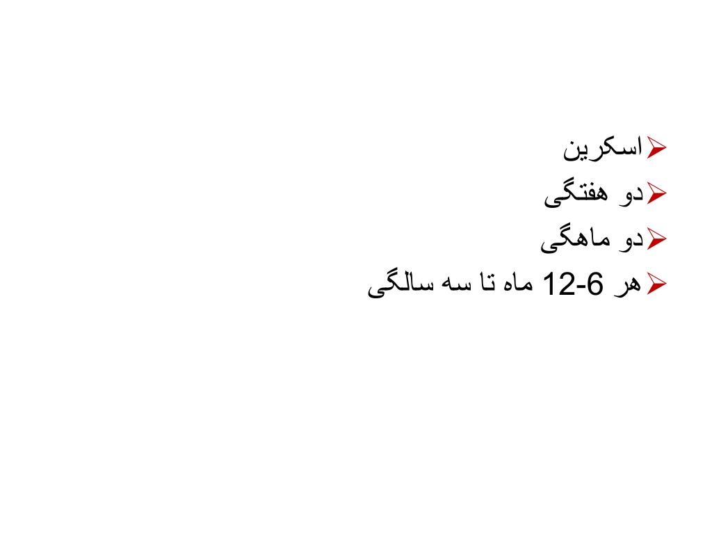 اسکرین • دو هفتگی • دو ماهگی • هر 6-12 ماه تا سه سالگی