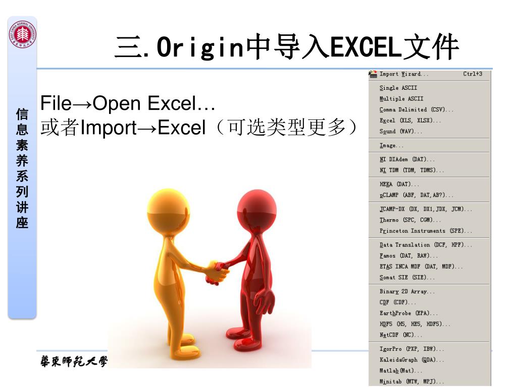 三.Origin中导入EXCEL文件 File→Open Excel… 或者Import→Excel(可选类型更多)