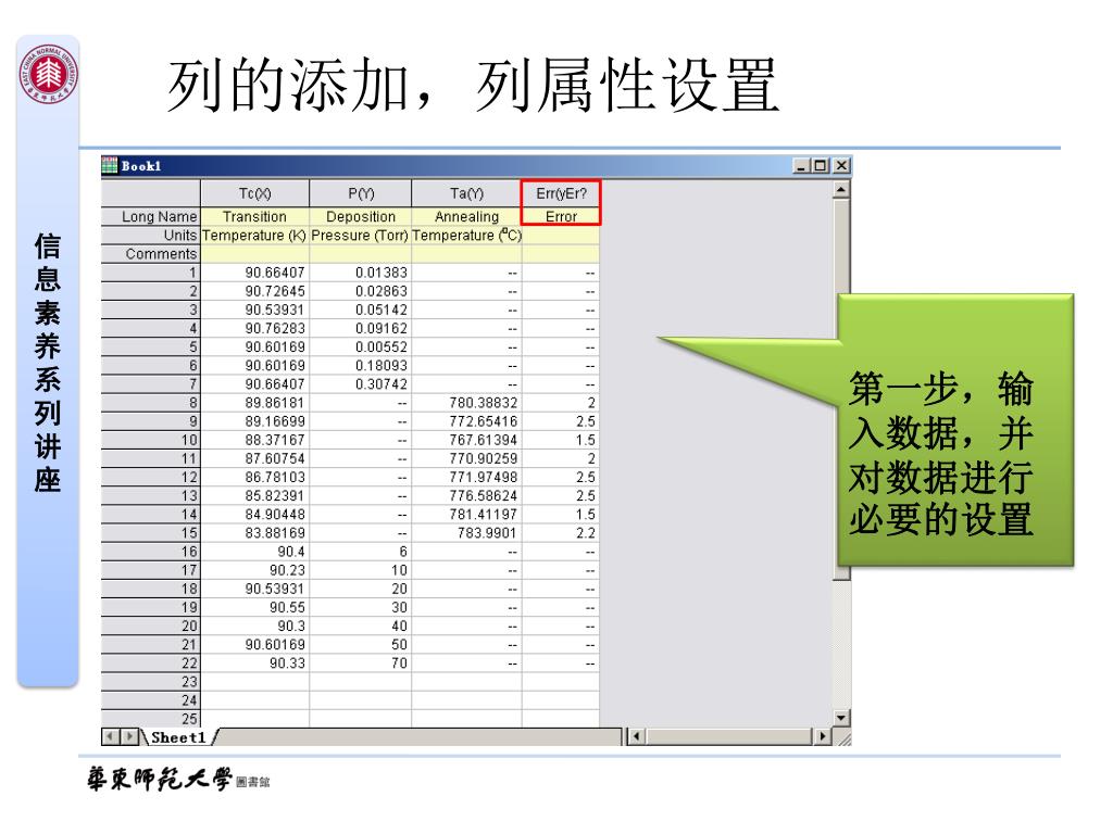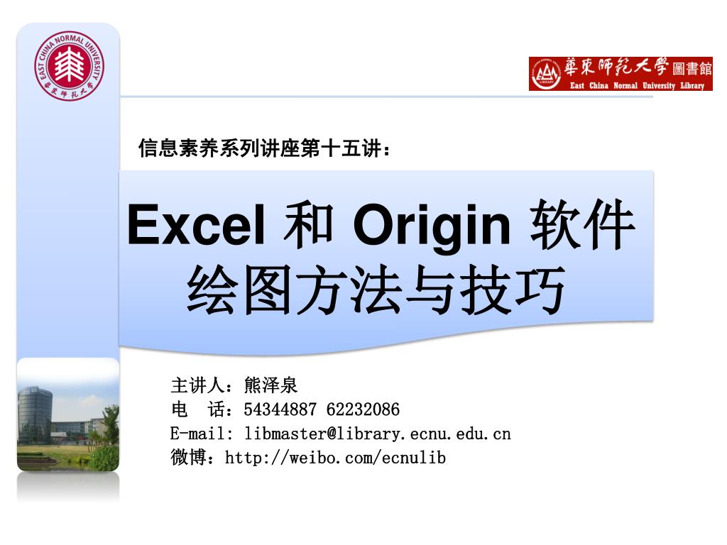 信息素养系列讲座第十五讲: Excel 和 Origin 软件绘图方法与技巧 主讲人:熊泽泉 电 话:54344887 62232086 E-mail: libmaster@library.ecnu.edu.cn 微博:http://weibo.com/ecnulib