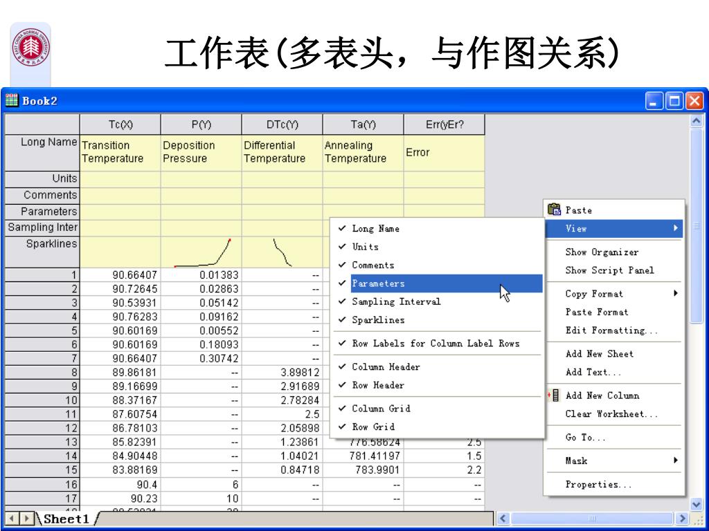 Origin and Microsoft Excel Comparison Excel简单易用,主要用于日常信息或者一般的商业信息处理。 Origin主要用于科研领域,提供了更多的处理实验数据的工具,作图更符合科研领域出版物的要求。