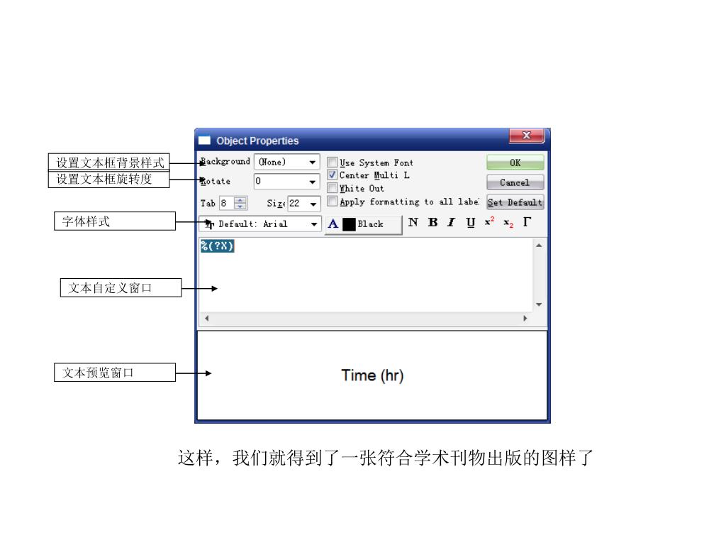 设置文本框背景样式 设置文本框旋转度 字体样式 文本预览窗口 文本自定义窗口 对图中文本进行更详细的设置 这样,我们就得到了一张符合学术刊物出版的图样了