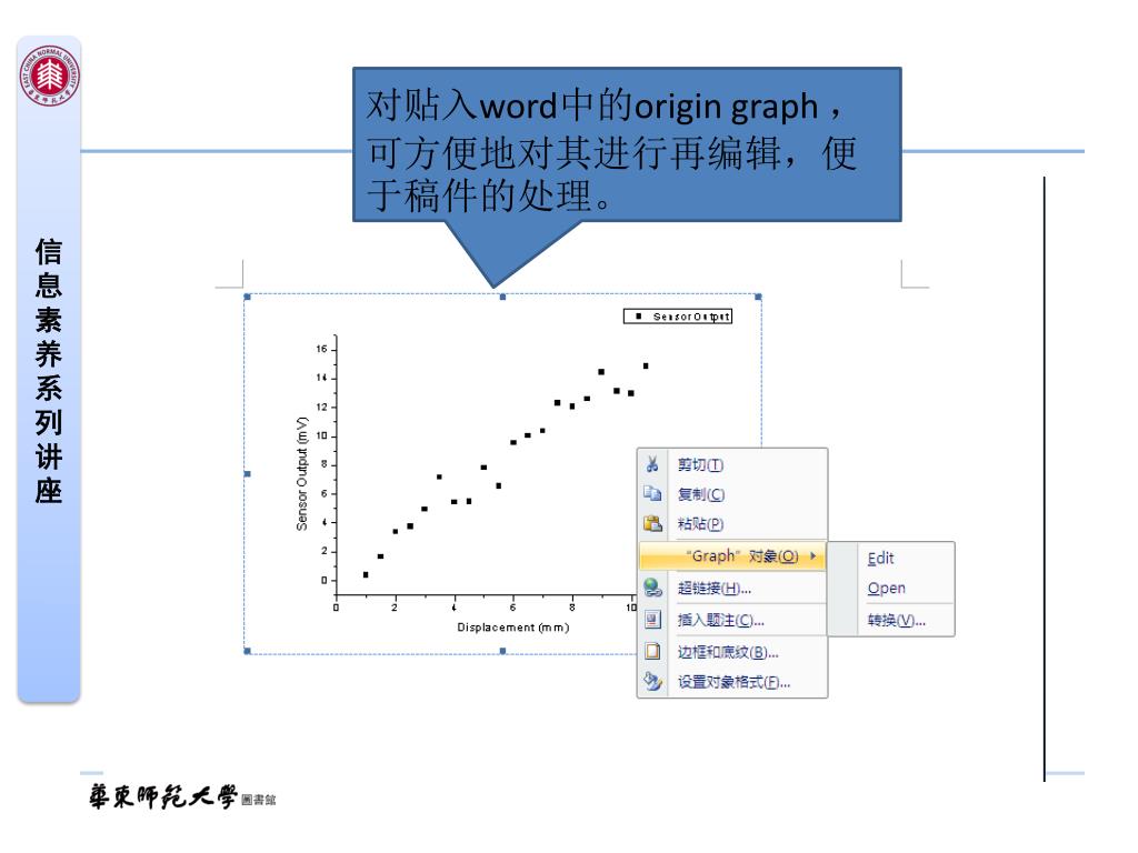 对贴入word中的origin graph ,可方便地对其进行再编辑,便于稿件的处理。