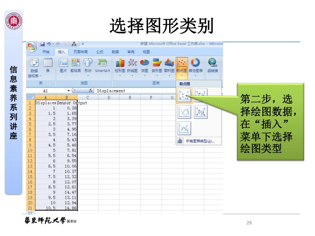 选择图形类别 第二步,选择绘图数据,在“插入”菜单下选择绘图类型