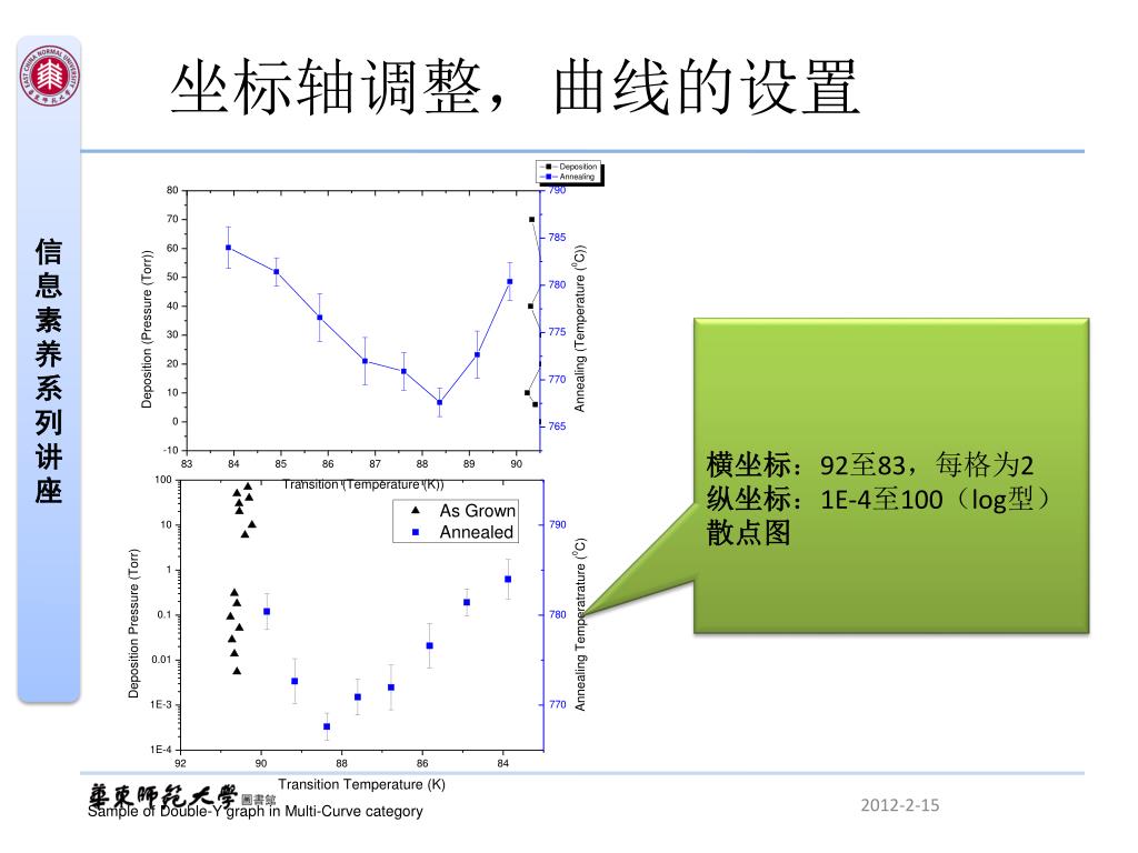 坐标轴调整,曲线的设置 横坐标:92至83,每格为2 纵坐标:1E-4至100(log型) 散点图 2012-2-15
