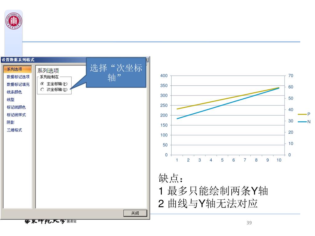 选择“次坐标轴” 缺点: 1 最多只能绘制两条Y轴 2 曲线与Y轴无法对应
