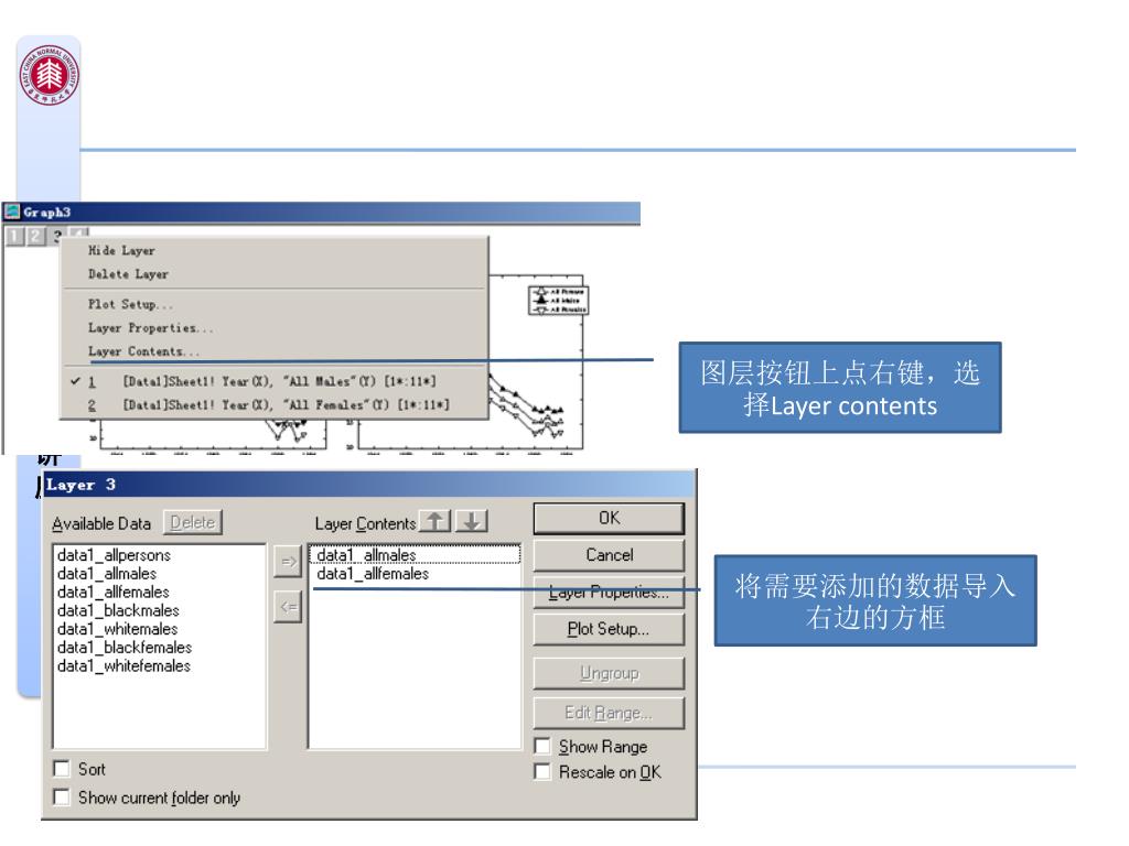 图层按钮上点右键,选择Layer contents 将需要添加的数据导入右边的方框