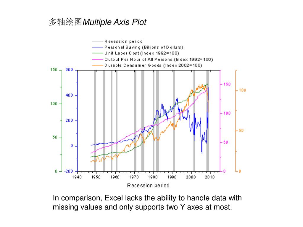 多轴绘图Multiple Axis Plot In comparison, Excel lacks the ability to handle data with missing values and only supports two Y axes at most.