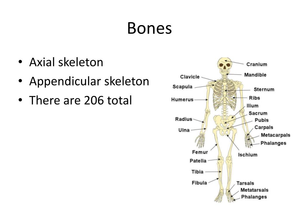 Bones • Axial skeleton • Appendicular skeleton • There are 206 total