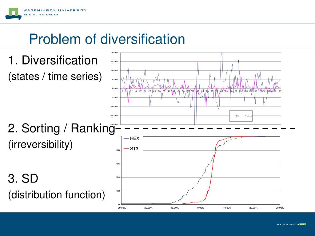 Problem of diversification 1. Diversification (states / time series) 2. Sorting / Ranking (irreversibility) 3. SD (distribution function)