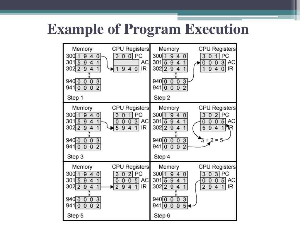 Execute Cycle • Processor-memory. • data transfer between CPU and main memory. • Processor I/O. • Data transfer between CPU and I/O module. • Data processing. • Some arithmetic or logical operation on data. • Control. • To control the alteration of sequence of operations. • e.g. jump • An instruction’s execution may involve a combination of these actions.