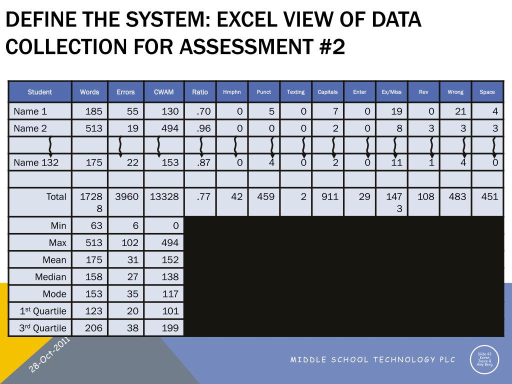 Define the System: Excel View of Data Collection for Assessment #2 Middle School Technology PLC