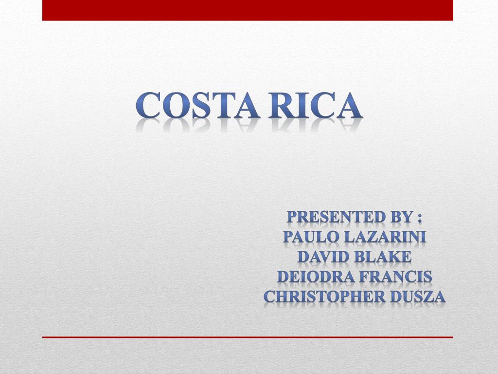 Costa Rica Presented by : Paulo Lazarini David Blake DeiodraFrancis Christopher Dusza