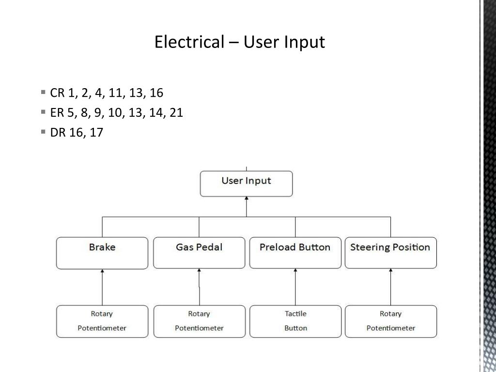 CR 1, 2, 4, 11, 13, 16 • ER 5, 8, 9, 10, 13, 14, 21 • DR 16, 17 Electrical – User Input