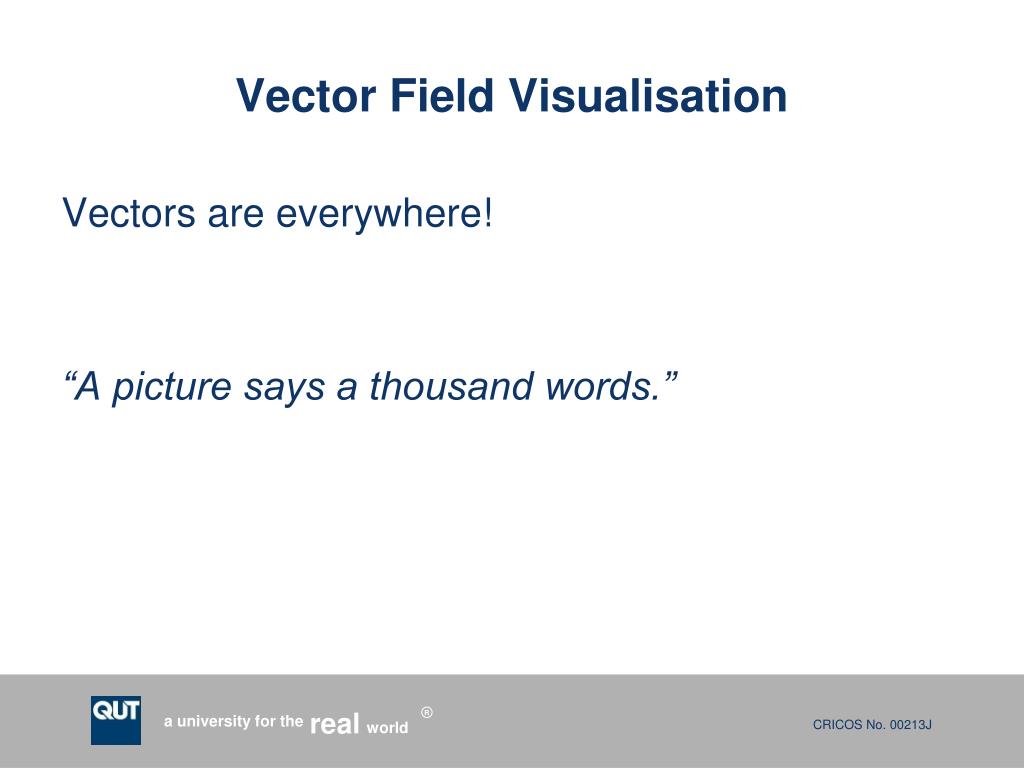 Vector Field Visualisation • Vectors are everywhere! • “A picture says a thousand words.”