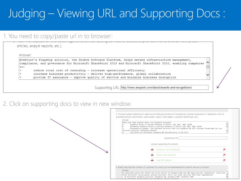Judging – Viewing URL and Supporting Docs : 1. You need to copy/paste url in to browser: 2. Click on supporting docs to view in new window:
