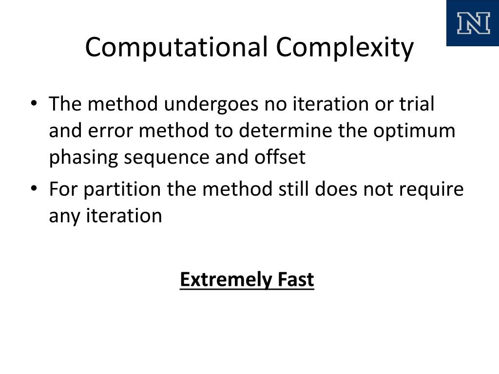 Computational Complexity • The method undergoes no iteration or trial and error method to determine the optimum phasing sequence and offset • For partition the method still does not require any iteration Extremely Fast