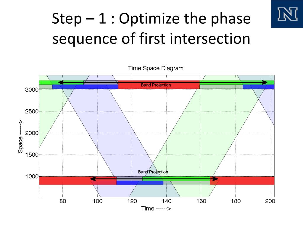Step – 2 : Objective Function • Arguments • Band projection after optimizing the phase sequence of the first intersection • Phase time of the second intersection • Return • The ratio of the inbound and outbound bandwidth • The offset is calculated based on the return (ratio)