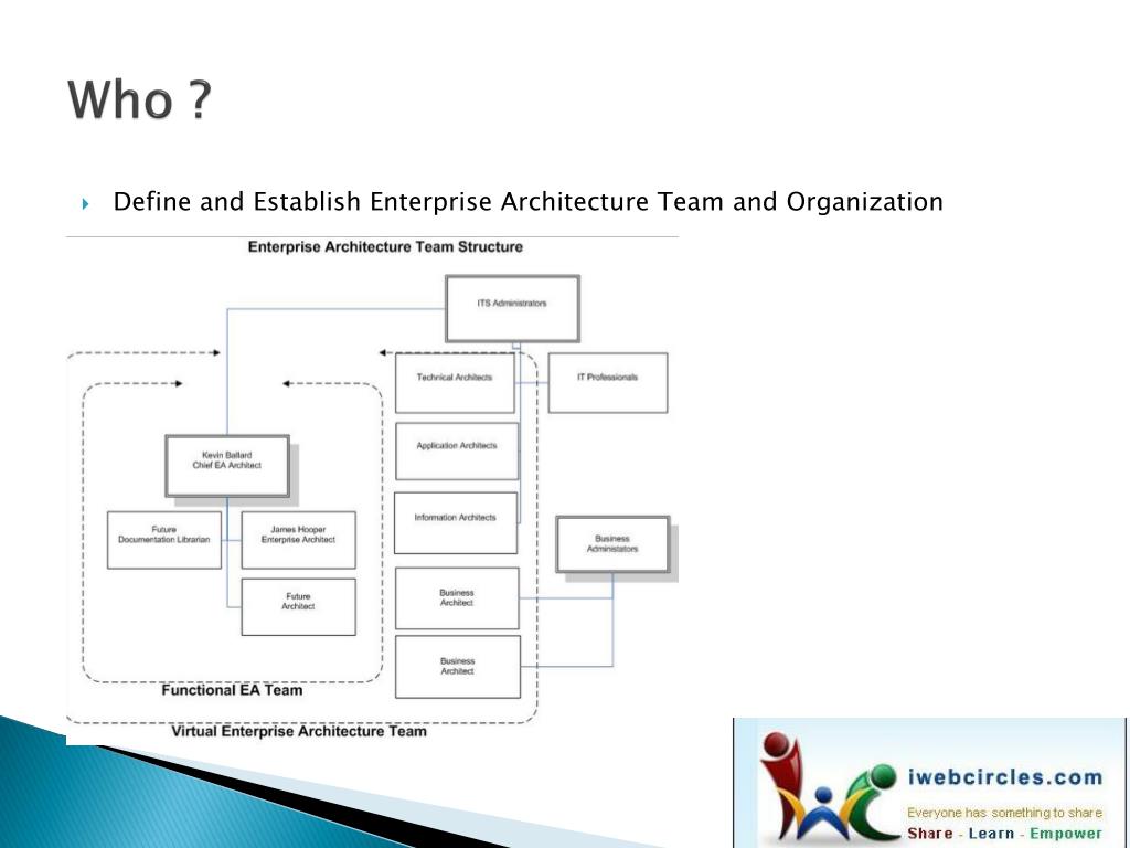 Who ? • Define and Establish Enterprise Architecture Team and Organization