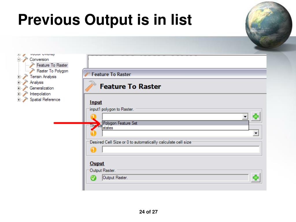 Comparison Green is ArcGIS ModelBuilder, Purple is Sextante modeler and Blue MapWindow Modeler.