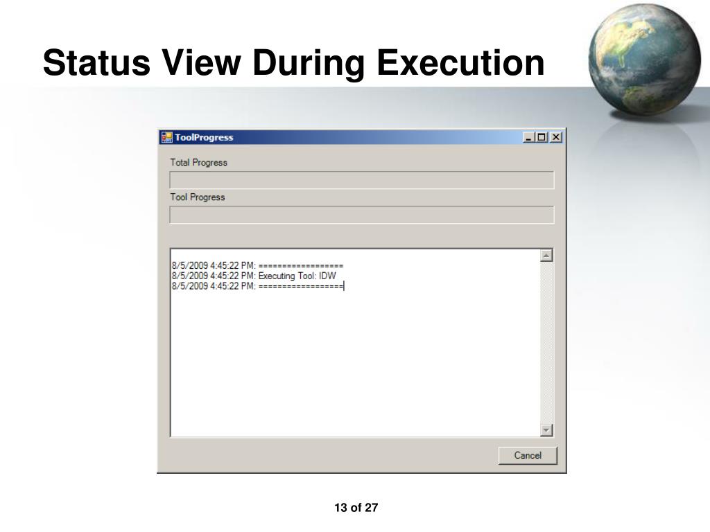 Tool Sources Direct Implementation of ITool interface Run-time generation of ITools using IToolProvider Wrapped non-native code Data conversion, interoperability Web services