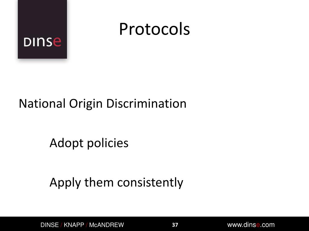 Protocols National Origin Discrimination Adopt policies Apply them consistently