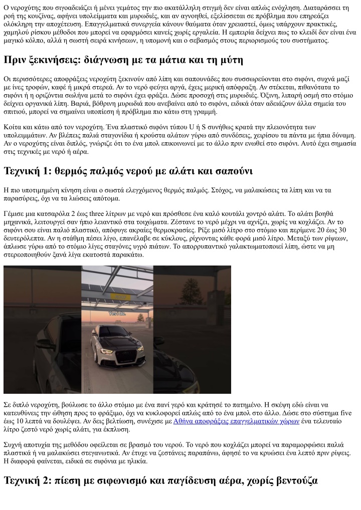 Ο νεροχύτης που σιγοαδειάζει ή μένει γεμάτος την πιο ακατάλληλη στιγμή δεν είναι απλώς ενόχληση. Διαταράσσει τη ροή της κουζίνας, αφήνει υπολείμματα και μυρωδιές, και αν αγνοηθεί, εξελίσσεται σε πρόβλημα που επηρεάζει ολόκληρη την αποχέτευση. Επαγγελματικά συνεργεία κάνουν θαύματα όταν χρειαστεί, όμως υπάρχουν πρακτικές, χαμηλού ρίσκου μέθοδοι που μπορεί να εφαρμόσει κανείς χωρίς εργαλεία. Η εμπειρία δείχνει πως το κλειδί δεν είναι ένα μαγικό κόλπο, αλλά η σωστή σειρά κινήσεων, η υπομονή και ο σεβασμός στους περιορισμούς του συστήματος. Πριν ξεκινήσεις: διάγνωση με τα μάτια και τη μύτη Οι περισσότερες αποφράξεις νεροχύτη ξεκινούν από λίπη και σαπουνάδες που συσσωρεύονται στο σιφόνι, συχνά μαζί με ίνες τροφών, καφέ ή μικρά στερεά. Αν το νερό φεύγει αργά, έχεις μερική απόφραξη. Αν στέκεται, πιθανότατα το σιφόνι ή η οριζόντια σωλήνα μετά το σιφόνι έχει φράξει. Δώσε προσοχή στις μυρωδιές. Όξινη, λιπαρή οσμή στο στόμιο δείχνει οργανικά λίπη. Βαριά, βόθρινη μυρωδιά που ανεβαίνει από το σιφόνι, ειδικά όταν αδειάζουν άλλα σημεία του σπιτιού, μπορεί να σημαίνει υποπίεση ή πρόβλημα πιο κάτω στη γραμμή. Κοίτα και κάτω από τον νεροχύτη. Ένα πλαστικό σιφόνι τύπου U ή S συνήθως κρατά την πλειονότητα των υπολειμμάτων. Αν βλέπεις παλιά σταγονίδια ή κρούστα αλάτων γύρω από συνδέσεις, χειρίσου τα πάντα με ήπια δύναμη. Αν ο νεροχύτης είναι διπλός, γνώριζε ότι το ένα μπολ επικοινωνεί με το άλλο πριν ενωθεί στο σιφόνι. Αυτό έχει σημασία στις τεχνικές με νερό ή αέρα. Τεχνική 1: θερμός παλμός νερού με αλάτι και σαπούνι Η πιο υποτιμημένη κίνηση είναι ο σωστά ελεγχόμενος θερμός παλμός. Στόχος, να μαλακώσεις τα λίπη και να τα παρασύρεις, όχι να τα λιώσεις απότομα. Γέμισε μια κατσαρόλα 2 έως three λίτρων με νερό και πρόσθεσε ένα καλό κουτάλι χοντρό αλάτι. Το αλάτι βοηθά μηχανικά, λειτουργεί σαν ήπιο λειαντικό στα τοιχώματα. Ζέστανε το νερό μέχρι να αχνίζει, χωρίς να κοχλάζει. Αν το σιφόνι σου είναι παλιό πλαστικό, απόφυγε ακραίες θερμοκρασίες. Ρίξε μισό λίτρο στο στόμιο και περίμενε 20 έως 30 δευτερόλεπτα. Αν η στάθμη πέσει λίγο, επανέλαβε σε κύκλους, ρίχνοντας κάθε φορά μισό λίτρο. Μεταξύ των ρίψεων, άπλωσε γύρω από το στόμιο λίγες σταγόνες υγρό πιάτων. Το απορρυπαντικό γαλακτωματοποιεί λίπη, ώστε να μη στερεοποιηθούν ξανά λίγα εκατοστά παρακάτω. Σε διπλό νεροχύτη, βούλωσε το άλλο στόμιο με ένα πανί γερό και κράτησέ το πατημένο. Η σκέψη εδώ είναι να κατευθύνεις την ώθηση προς το φράξιμο, όχι να κυκλοφορεί απλώς από το ένα μπολ στο άλλο. Δώσε στο σύστημα five έως 10 λεπτά να δουλέψει. Αν δεις βελτίωση, συνέχισε με Αθήνα αποφράξεις επαγγελματικών χώρων ένα τελευταίο λίτρο ζεστό νερό χωρίς αλάτι, για έκπλυση. Συχνή αποτυχία της μεθόδου οφείλεται σε βρασμό του νερού. Το νερό που κοχλάζει μπορεί να παραμορφώσει παλιά πλαστικά ή να μαλακώσει στεγανωτικά. Αν έτυχε να ζεστάνεις παραπάνω, άφησέ το να κρυώσει ένα λεπτό πριν ρίψεις. Η διαφορά φαίνεται, ειδικά σε σιφόνια με ηλικία. Τεχνική 2: πίεση με σιφωνισμό και παγίδευση αέρα, χωρίς βεντούζα