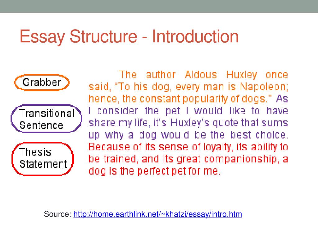 Essay Structure - Introduction Source: http://home.earthlink.net/~khatzi/essay/intro.htm