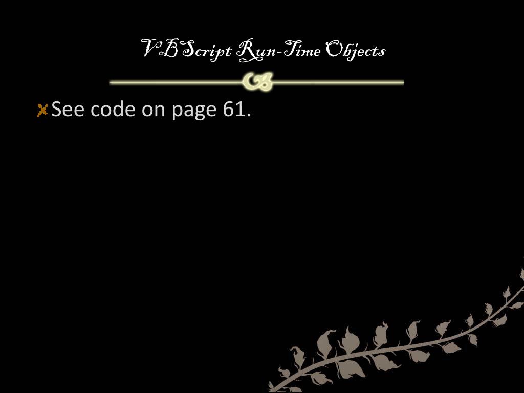 VBScript Run-Time Objects • See code on page 61.