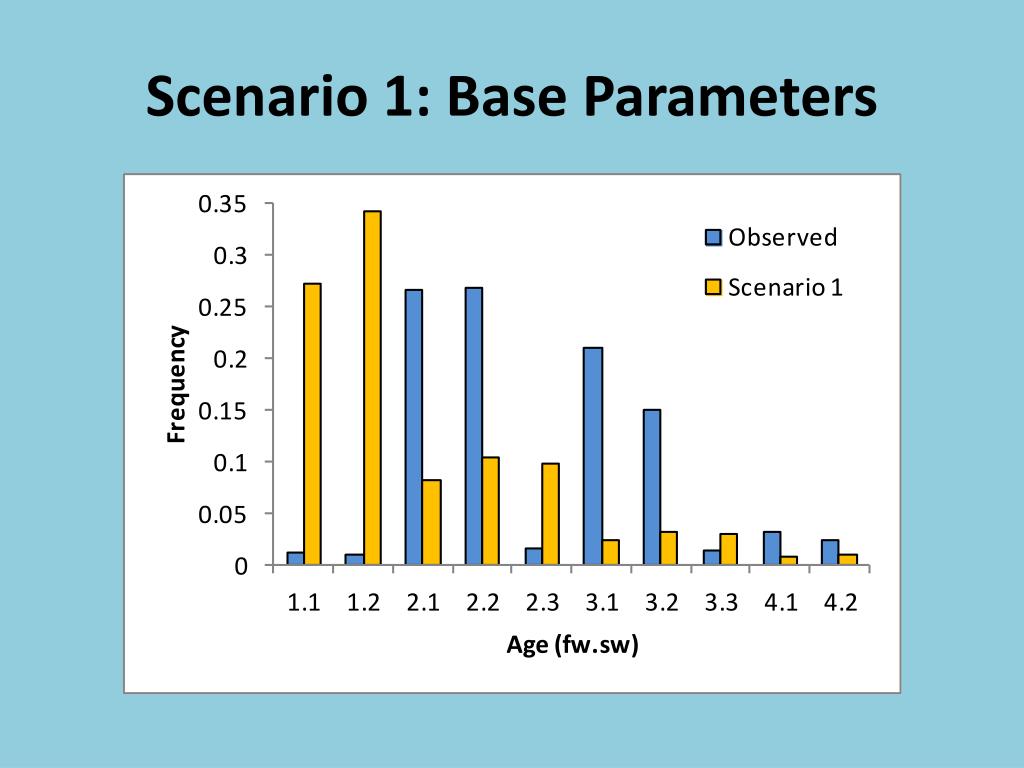 Sensitivity Analysis • Changed basic rates +/-10% • Egg/fry, parr, smolt, ocean survivals; fecundity • Aggregate productivity most sensitive to FW survival (79%-124%) • Relative age-specific fitness changed little • Adopting exponential So1 schedule changed relative rankings
