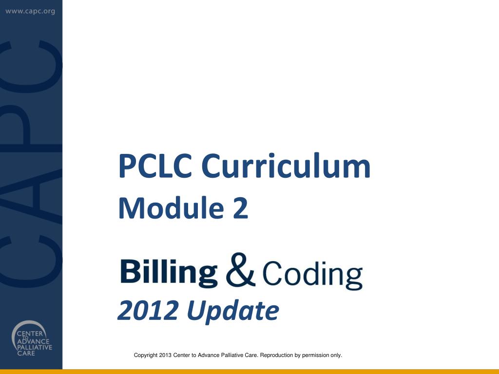 PCLC Curriculum Module 2. 2012 Update. Content Authorship. The following are authors and reviewers of this content: Authors David E. Weissman, MD Julie Pipke , CPC Reviewers Brian Cassel, PhD Lyn Ceronsky , MS, APRN Sandra Muchka , RN, MSN, CHPN Vyjeyanthi S. Periyakoil , MD