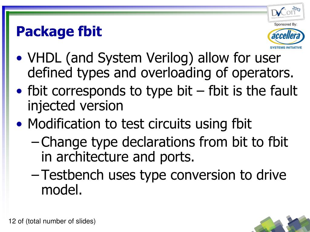 Presentation Outline • Background – What was needed and why • What was readily available and prior work in the area • The fault simulation types • fbit and fsim_logic • VHDL packages for fault simulation • Use of fbit and fsim_logic to address the need • Conclusions