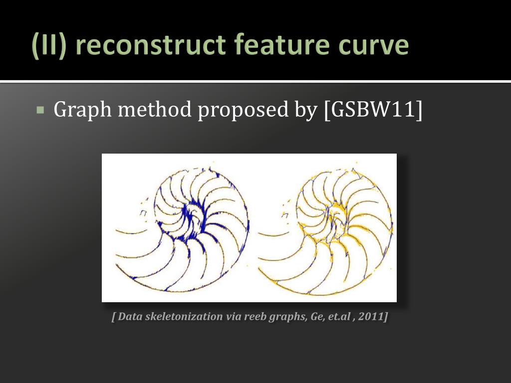 (II) reconstruct feature curve • Graph method proposed by [GSBW11] [ Data skeletonization via reeb graphs, Ge, et.al , 2011]