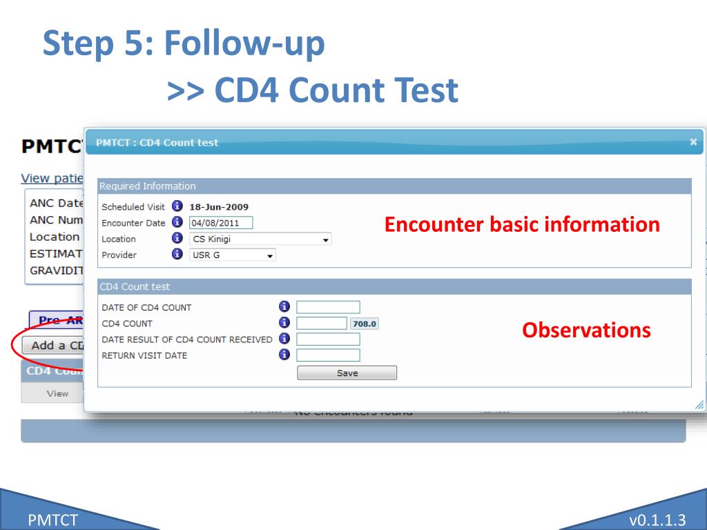 Step 5: Follow-up >> CD4 Count Test Encounter basic information Observations PMTCT v0.1.1.3