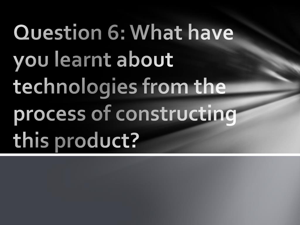 Question 6: What have you learnt about technologies from the process of constructing this product?