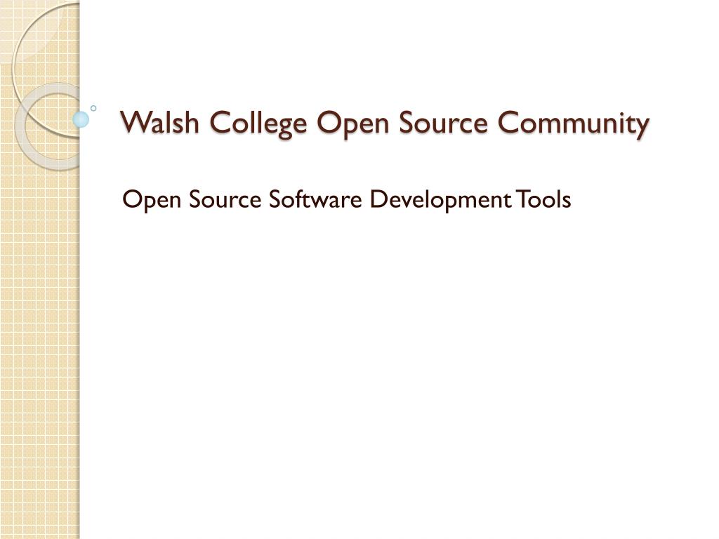Walsh College Open Source Community. Open Source Software Development Tools. What do these people have in common?. Bill Gates Paul Allen Steve Jobs Michael Dell Larry Ellison Mark Zuckerberg Peter Thiel. Linux. Ubuntu Fedora SUSE Debian. Languages. PHP Ruby on Rails Perl