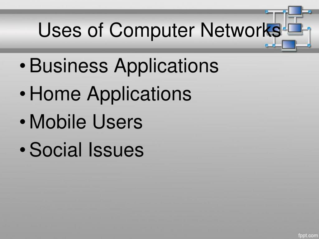 Uses of Computer Networks • Business Applications • Home Applications • Mobile Users • Social Issues
