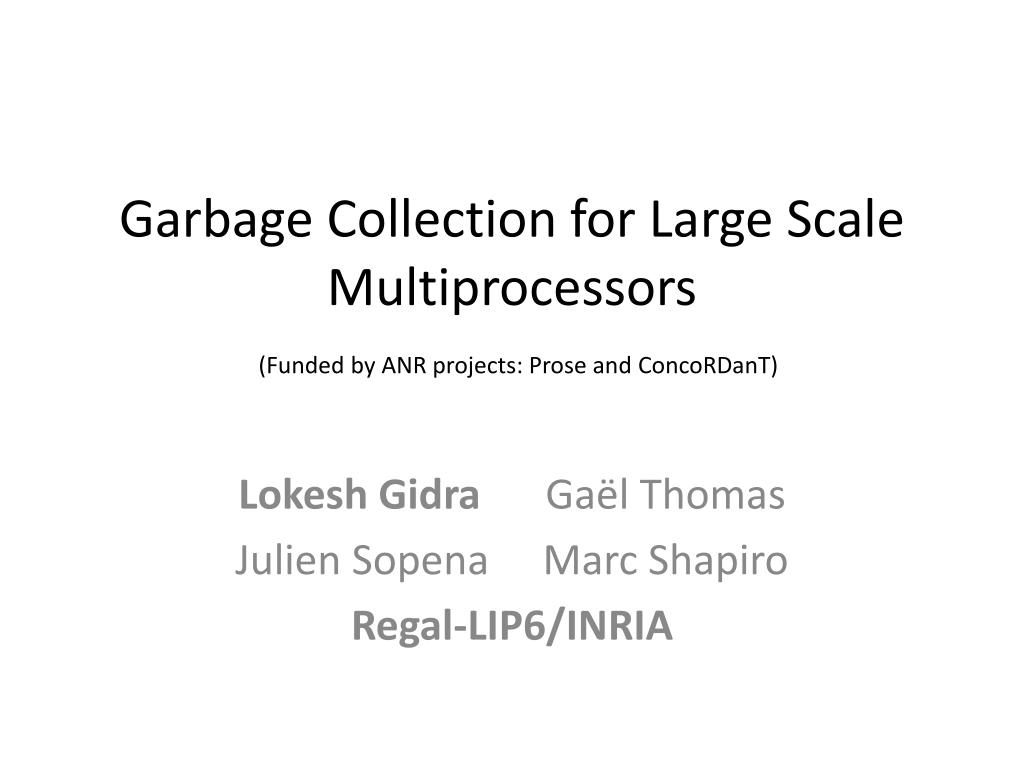 Garbage Collection for Large Scale Multiprocessors(Funded by ANR projects: Prose and ConcoRDanT) LokeshGidraGaël Thomas JulienSopena Marc Shapiro Regal-LIP6/INRIA