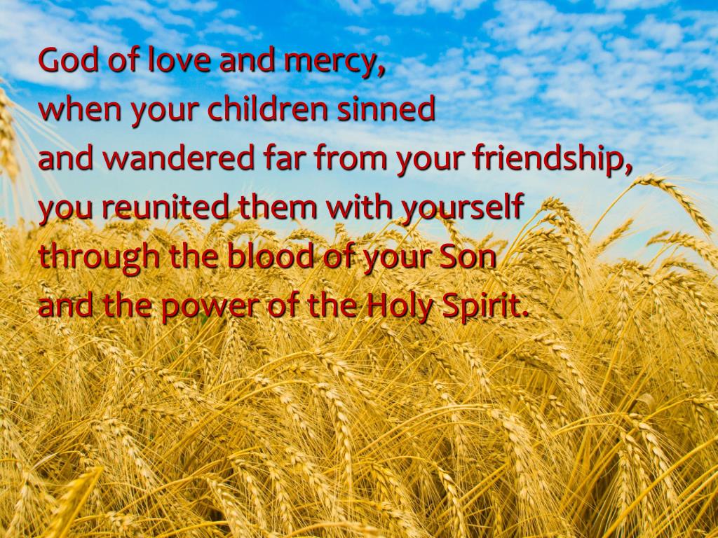 God of love and mercy, when your children sinned and wandered far from your friendship, you reunited them with yourself through the blood of your Son and the power of the Holy Spirit.