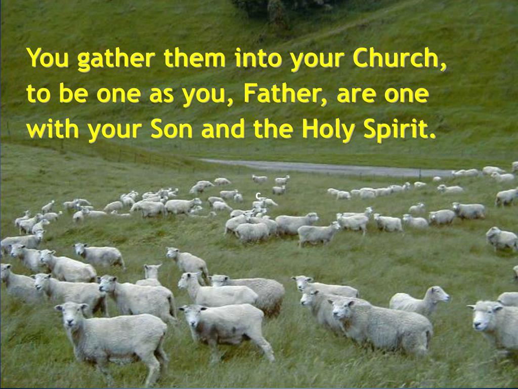 You gather them into your Church, to be one as you, Father, are one with your Son and the Holy Spirit. c