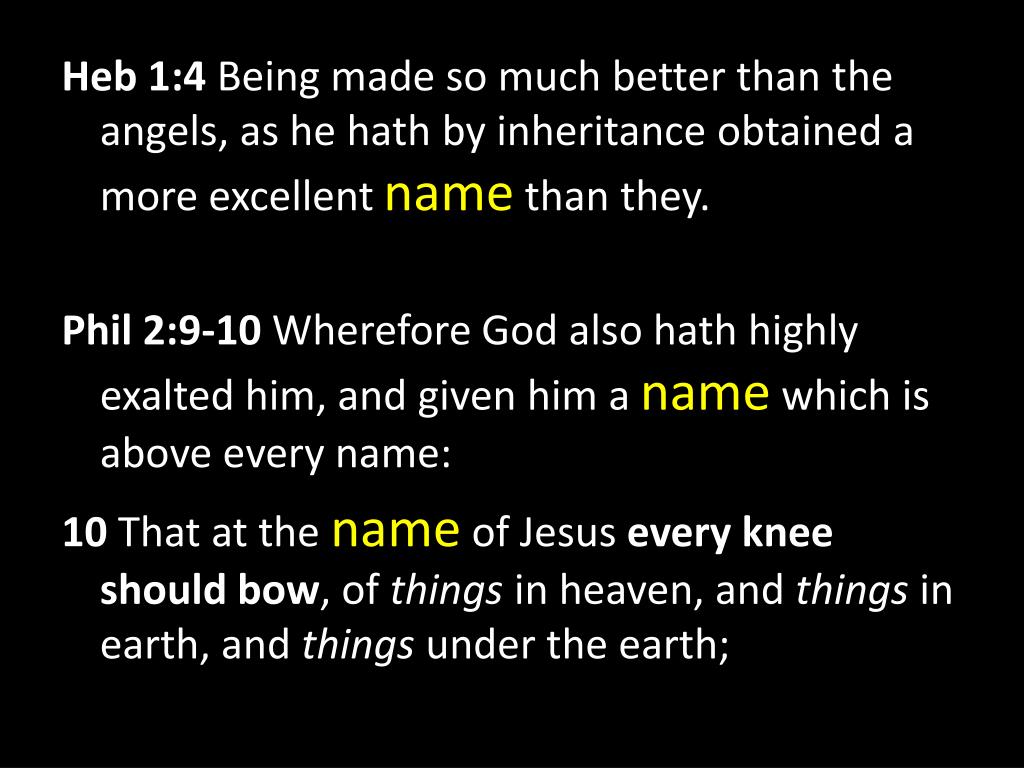 Heb 1:4 Being made so much better than the angels, as he hath by inheritance obtained a more excellent name than they. Phil 2:9-10 Wherefore God also hath highly exalted him, and given him a name which is above every name: 10 That at the name of Jesus every knee should bow, of things in heaven, and things in earth, and things under the earth;