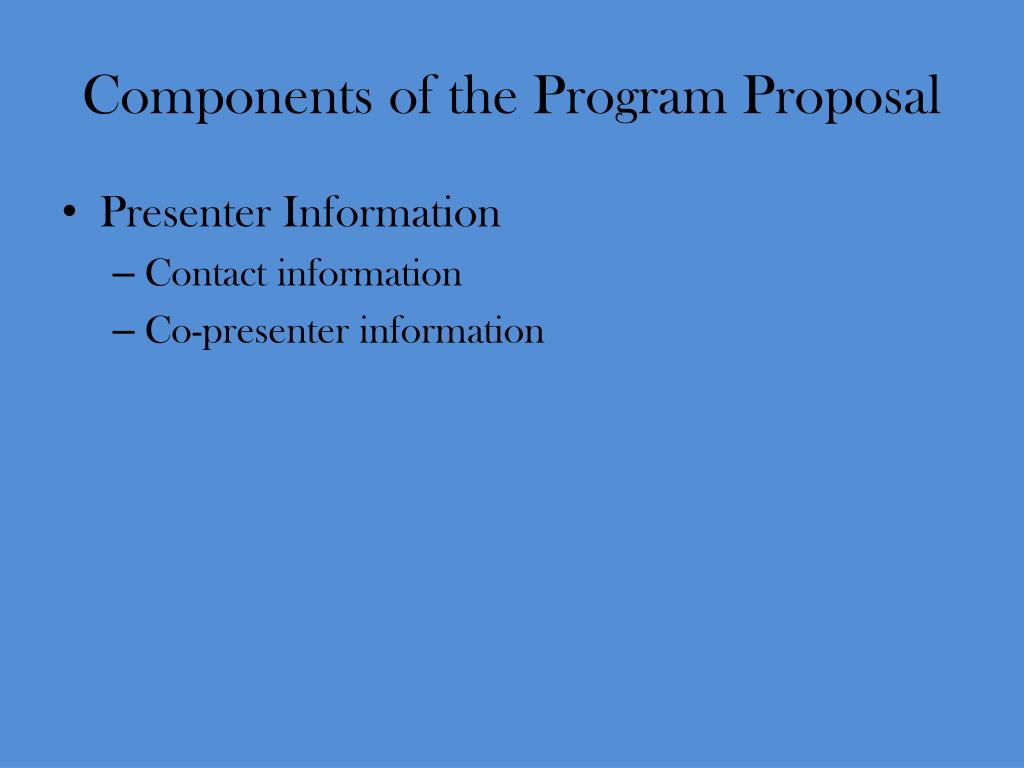 Components of the Program Proposal • Presenter Information • Contact information • Co-presenter information