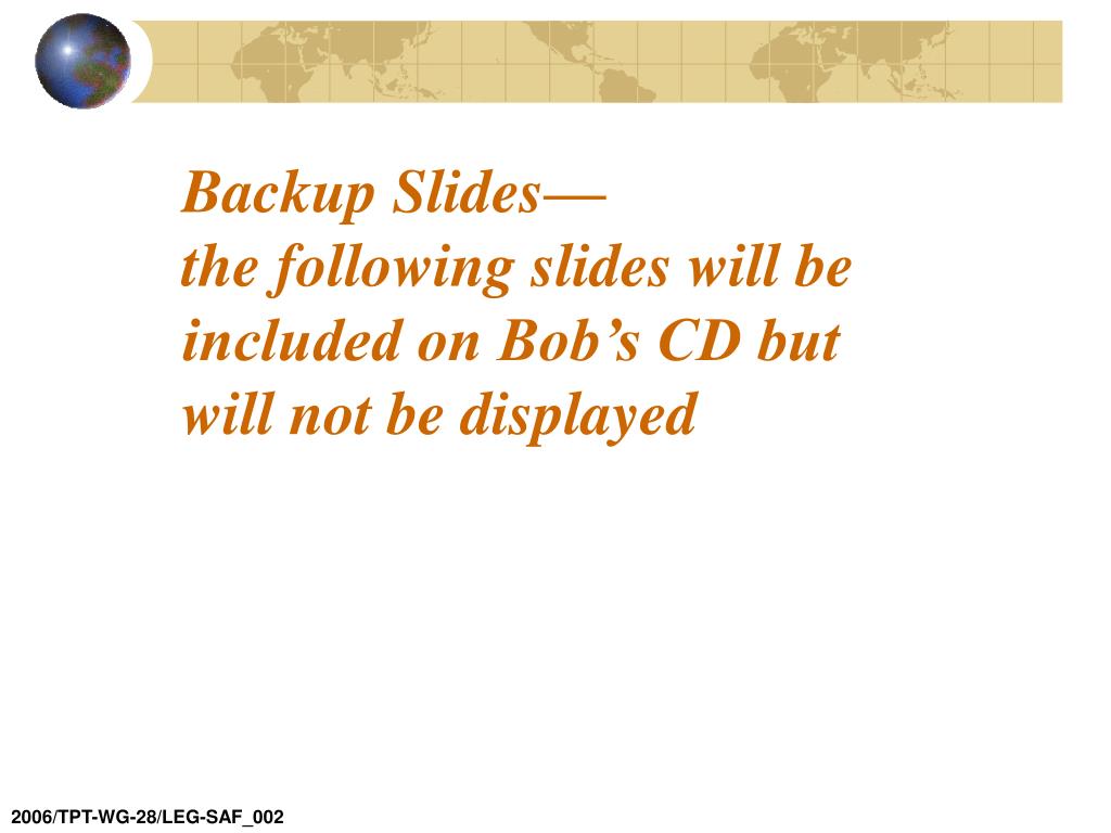 Backup Slides—the following slides will be included on Bob’s CD but will not be displayed 2006/TPT-WG-28/LEG-SAF_002