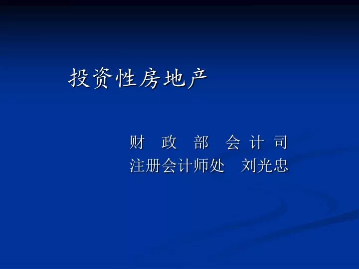 投资性房地产 财 政 部 会 计 司 注册会计师处 刘光忠