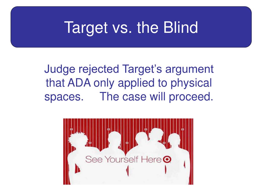 Target vs. the Blind Judge rejected Target’s argument that ADA only applied to physical spaces. The case will proceed.