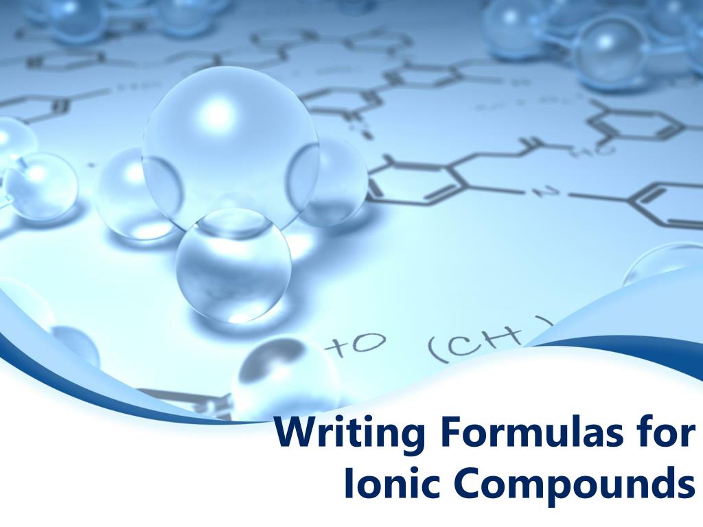Writing Formulas for Ionic Compounds • ~ The chemical formula may include one or more subscripts • ~ The subscripts tell you the ratio of each ion that is in that compound (NOTE: When there is no subscript, there is only one of that ion) • Sodium chloride ~ NaCl(1 sodium ion :1 chlorine ion) • Magnesium chloride~ MgCl2(1 Mg ion: 2 Cl ions)