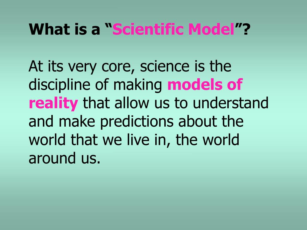 What is a “Scientific Model”? At its very core, science is the discipline of making models of reality that allow us to understand and make predictions about the world that we live in, the world around us.