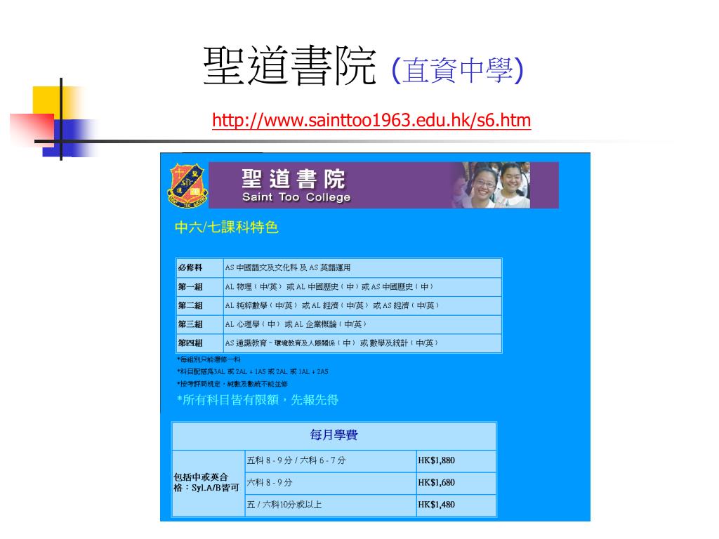 聖道書院 (直資中學) http://www.sainttoo1963.edu.hk/s6.htm