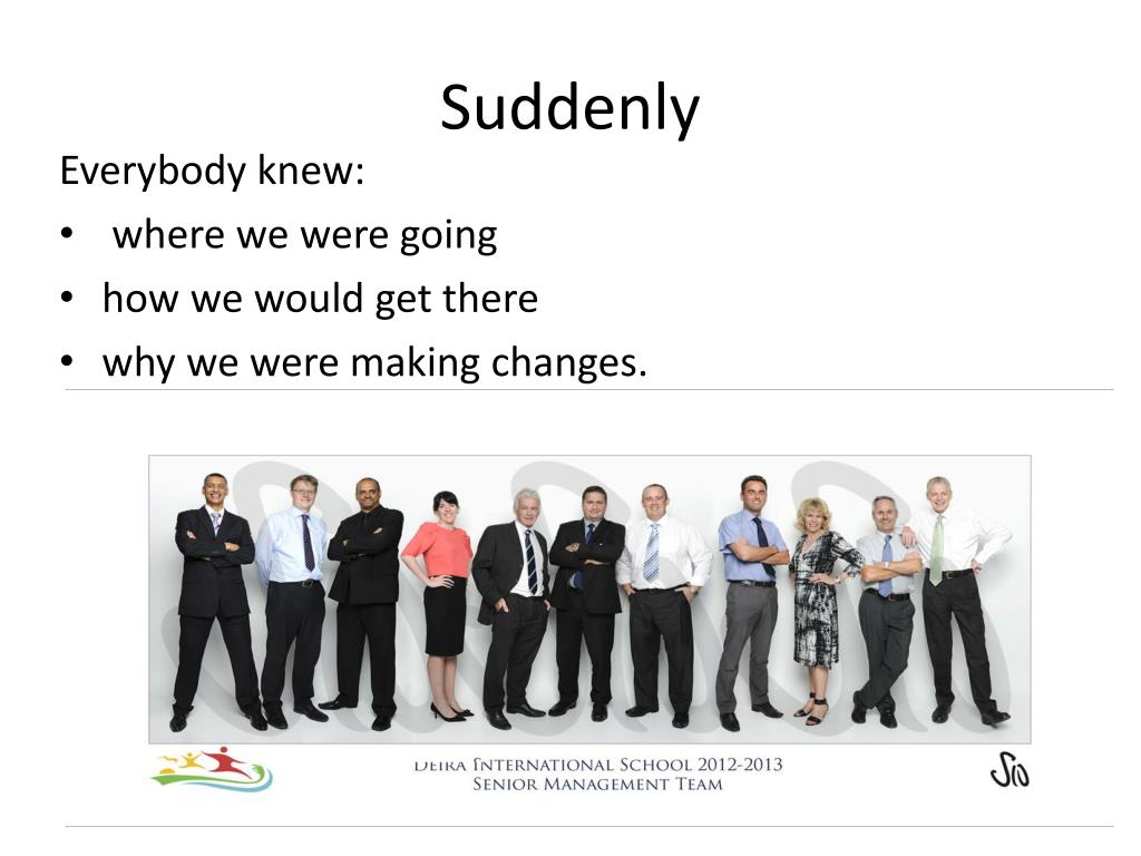 Suddenly Everybody knew: • where we were going • how we would get there • why we were making changes.