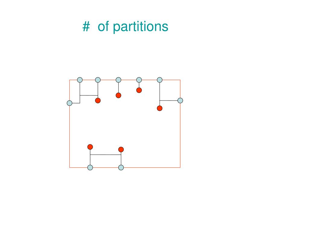 # of subproblems Each subproblem can be determined by three facts: 4 O(n ) 1. Position of four edges of a rectangle. 2 O(n ) 2. Position of portals at each edge. 3. Set of active portals. O(m) 2 4. Partition of active portals on the boundary. (In each part of the partition, all portals are connected and every terminal inside of the rectangle is connected to some tree containing a portal. ) O(m) 2